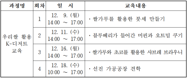 강화군 우리 쌀 활용 K디저트 교육생 모집