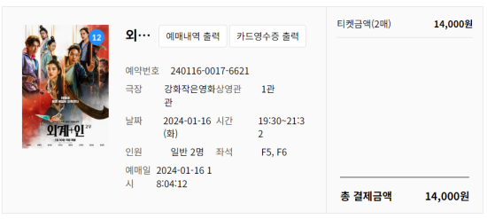 지금까지 내돈내산 강화 작은영화관 외계인 2부 관람 후기였습니다.