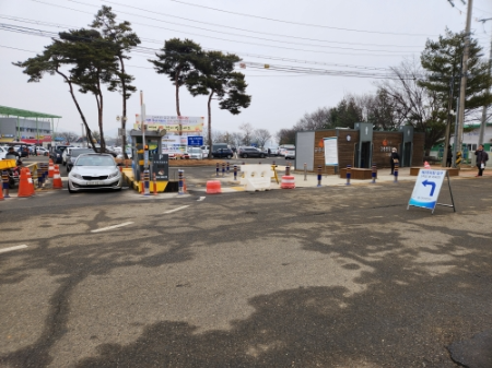 진입로를 들어오면 아래와 같이 공영주차장을 볼 수 있습니다. 방문했던 날이 5일장날이라 공영주차장이 만차가 되었습니다. 만차가 되면 안내표시판처럼 조금 더 앞으로 직진 후 좌회전하면 제2주차장을 이용할 수 있습니다.
