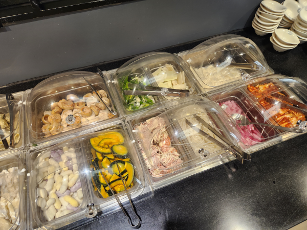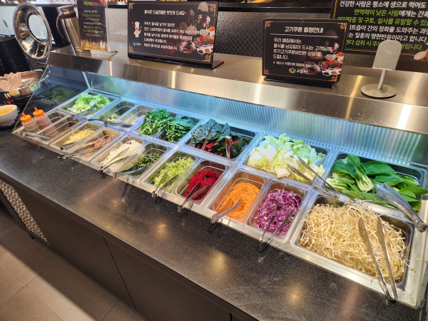 셀프바에는 정말 신선하고 먹음직스러운 야채와 월남쌈 재료들이 있습니다.