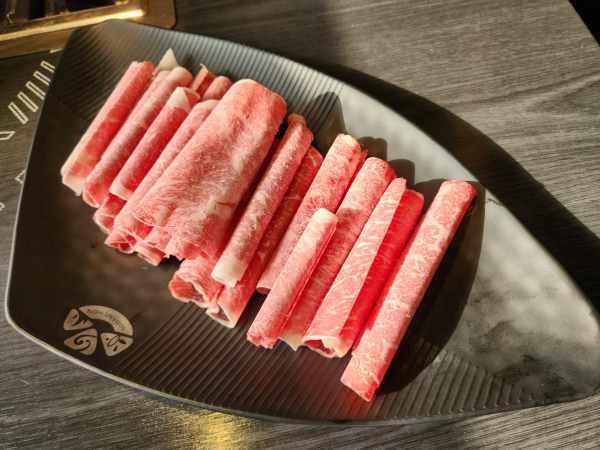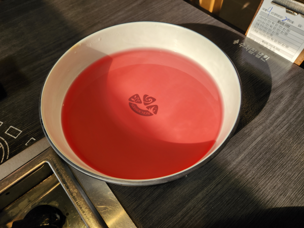 월남쌈을 적시는 물에는 비트 원액을 넣어 건강까지 생각 음식이라는 느낌이 들었습니다. 메뉴로 시킨 샤브샤브 고기 와규 또한 너무 맛있어 보입니다. 고기는 무한리필이 아니라 한번 나오고 그 후에는 추가 주문입니다.