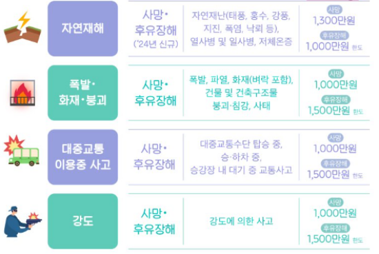 자연재해, 상해, 후유장해 등 13개 항목 보장 가능(24년 13개로 확대)
