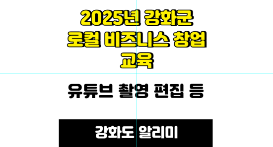 2025년 인천시 강화군 시군구 상생일자리 지원사업으로 로컬 비즈니스 창업과정 교육을 실시합니다. 약 4개월동안 매주 월, 목으로 진행되는 교육으로 유튜브 촬영, 편집, 기획 등 유튜브 콘텐츠 중심으로 진행됩니다.